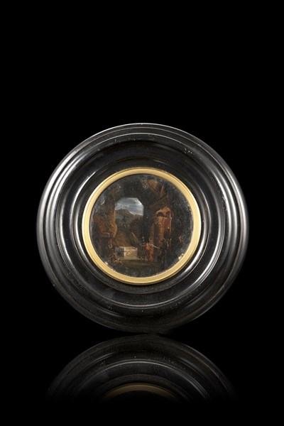 (attributed) Reverse painting on glass depicting the Holy Sepulchre. Framed (d. cm 8,5) (defects)