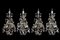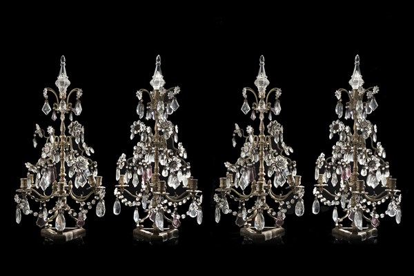 Gruppo di quattro girandolles a cinque fiamme in bronzo decorato a pendenti in
