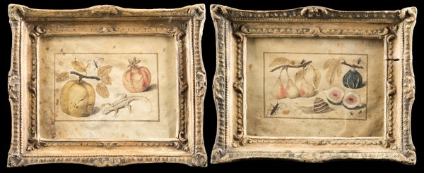 Scuola piemontese del secolo XVII Fichi, pere, lumaca e formiche e Melograno,