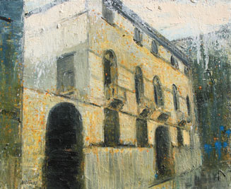 ALIOTO Massimiliano Brindisi 1972 Luce sulla città, 2005 olio su tela, cm. 50 x 60 Titolo, firma, data 'Luce sulla città, Massimiliano Alioto, 2005' (al retro) Autentica dell'artista su fotografia