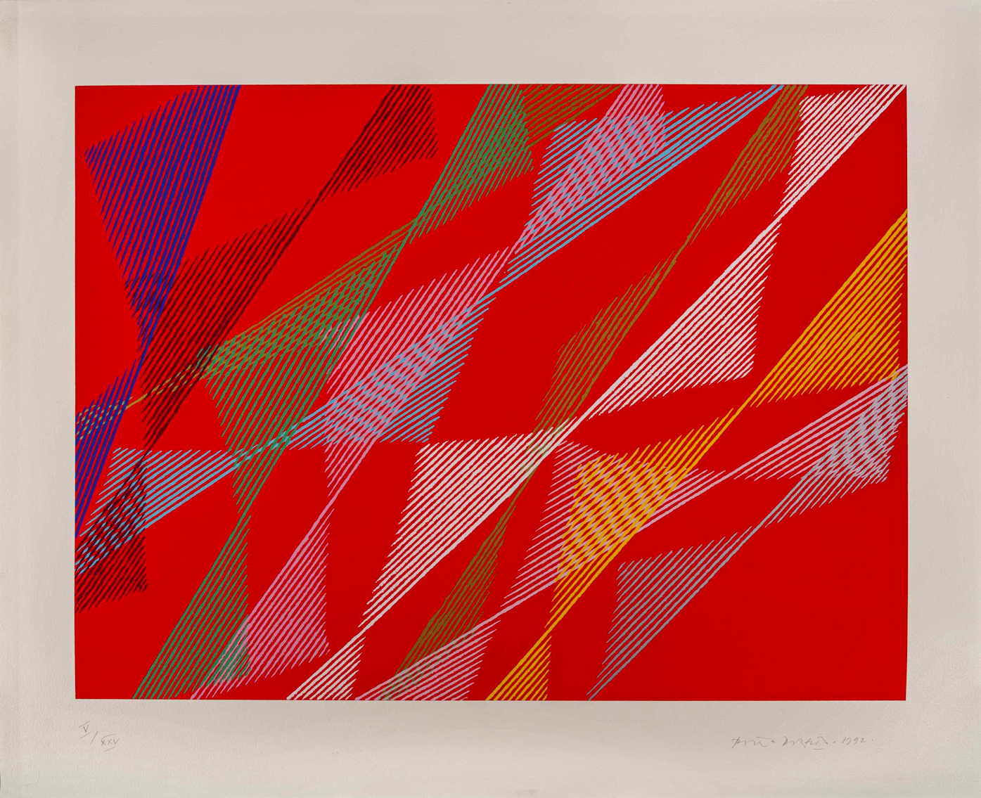 PIERO DORAZIO(1927 - 2005)Composizione1992Serigrafia, es. V/XXV73,4 x 90,3 cmFirmata e datata a matita in basso a destra, numerata in basso a sinistraPROVENIENZA:Collezione privata, Milano