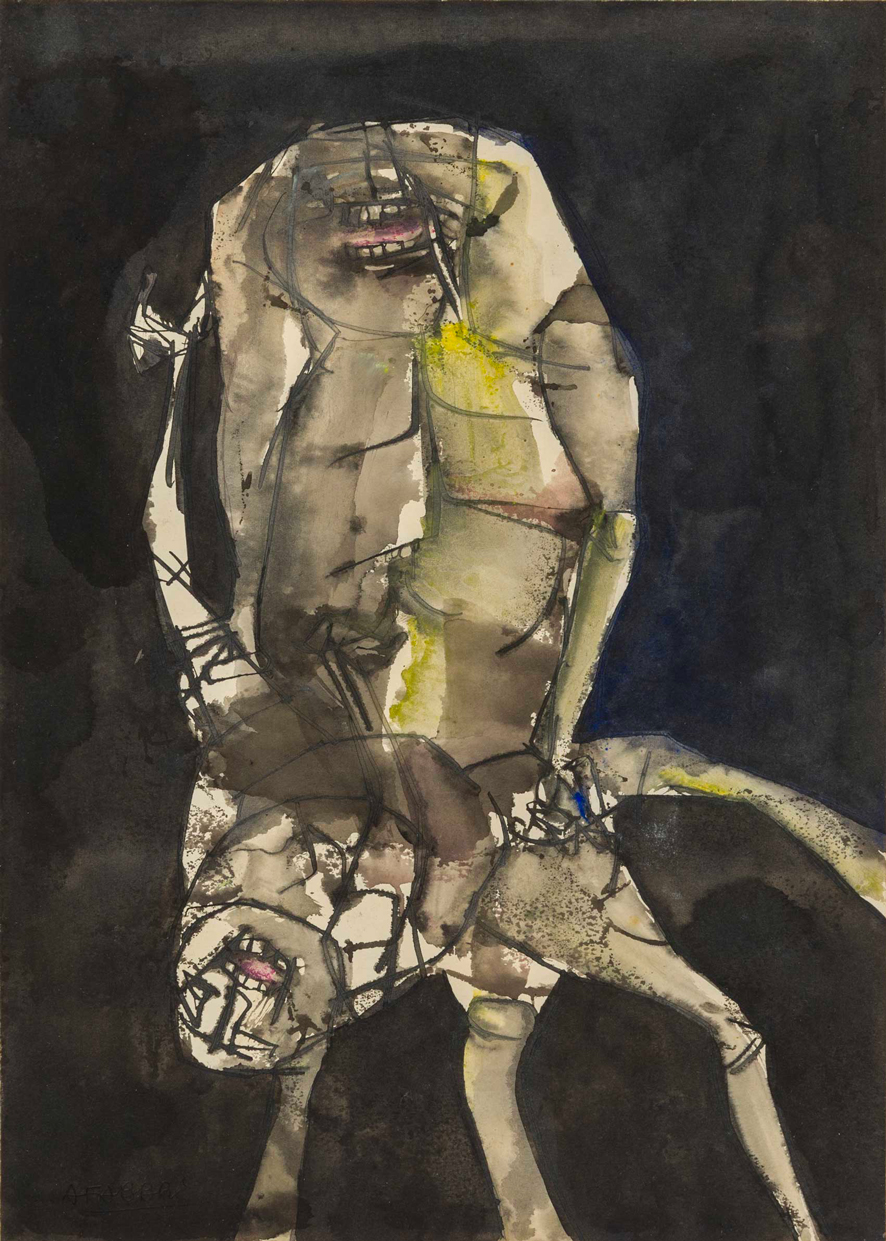 AGENORE FABBRI(1911 - 1998)Senza titoloTecnica mista su carta35 x 24,5 cmFirmata in basso a sinistraPROVENIENZA:Collezione privata, Pavia