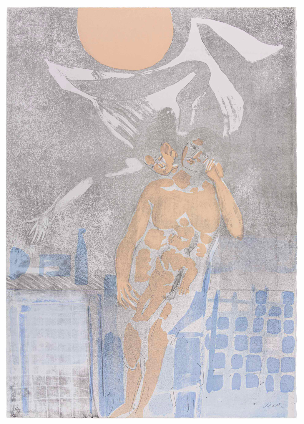 AUTORI VARILotto multiploLotto composto da 3 opere grafiche:Virgilio Guidi (1891 - 1984)Uomo del mio tempo1963Acquaforte su carta, es. 116/15031,4 x 21,6 cm (lastra)46 x 31,8 cm (foglio)Firmata a matita in basso a destra, numerata in basso a sinistraBruno Saetti (1902 - 1984)Senza titoloLitografia, es. 11/9970 x 49,5 cmFirmata a matita in basso a destra, numerata in basso a sinistraGianni Dova (1925 - 1991)ComposizioneAcquaforte e acquatinta su carta, es. 24/4035,4 x 25,5 cm (lastra)69,8 x 49,7 cm (foglio)Firmata a matita in basso a destra, numerata in basso a sinistra