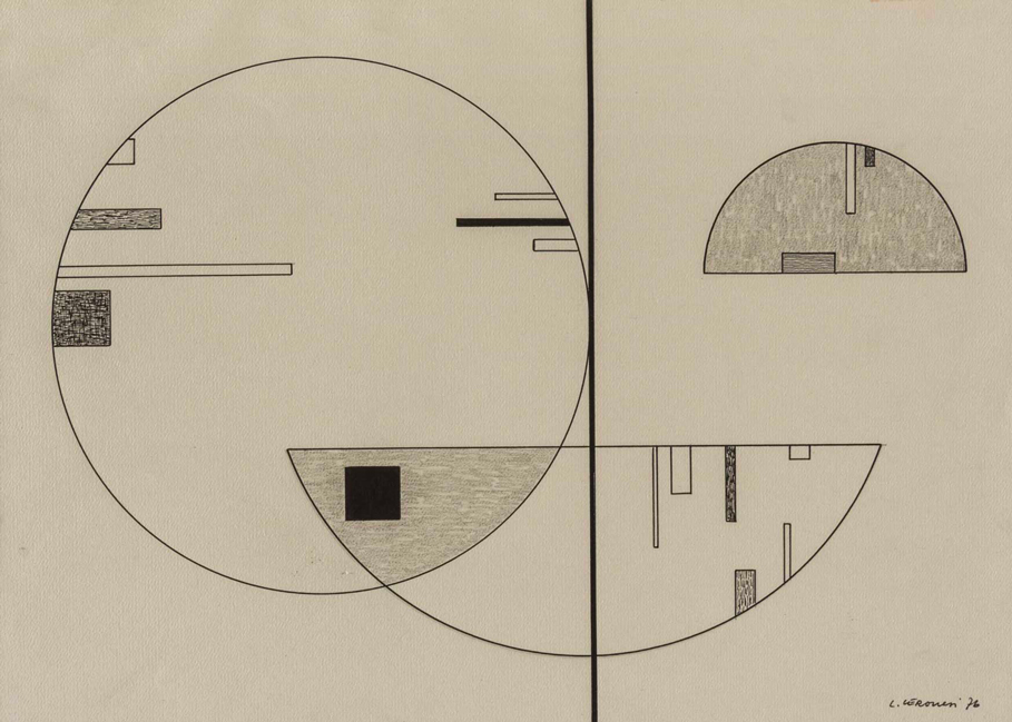 LUIGI VERONESI(1908 - 1998)Composizione1976China e matita su carta29,5 x 41 cmFirmata e datata in basso a destraPROVENIENZA:Collezione privata, Roma