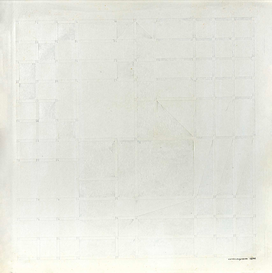 DINO COLALONGO(1946)Disegno bianco1974Collage di cartoncini50 x 50 cmFirmato e datato in basso a destraFirma, timbro dell'artista e scheda dell'opera su etichetta dell'artista al retroPROVENIENZA:Sincron Centro Culturale, Brescia (timbro al retro)Collezione privata, Milano