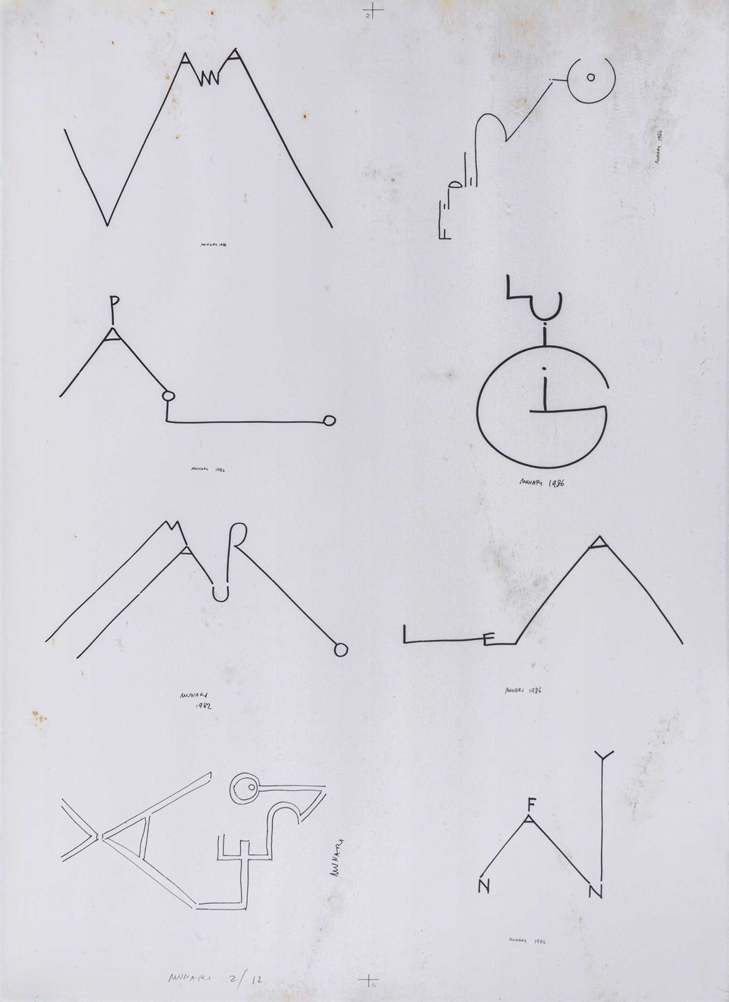 BRUNO MUNARI(1907 - 1998)NomiAnni '80Litografia, es. 2/1243,6 x 31,8 cmFirmata e numerata a matita in basso a sinistraPROVENIENZA:Collezione privata, Milano