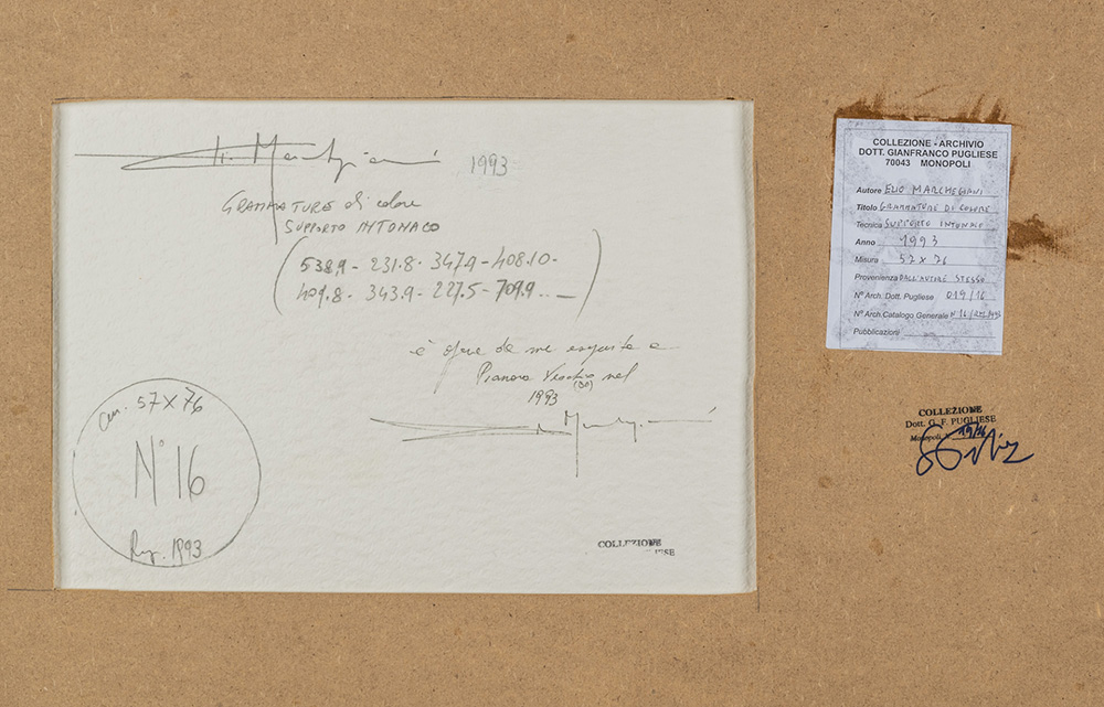 Note Etichetta e timbro Collezione Pugliese, Monopoli sul retro