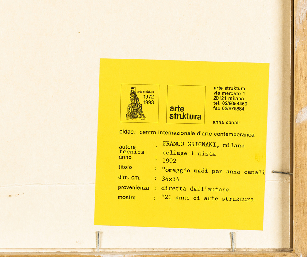 Note Etichetta Arte Struktura, Milano sul retro