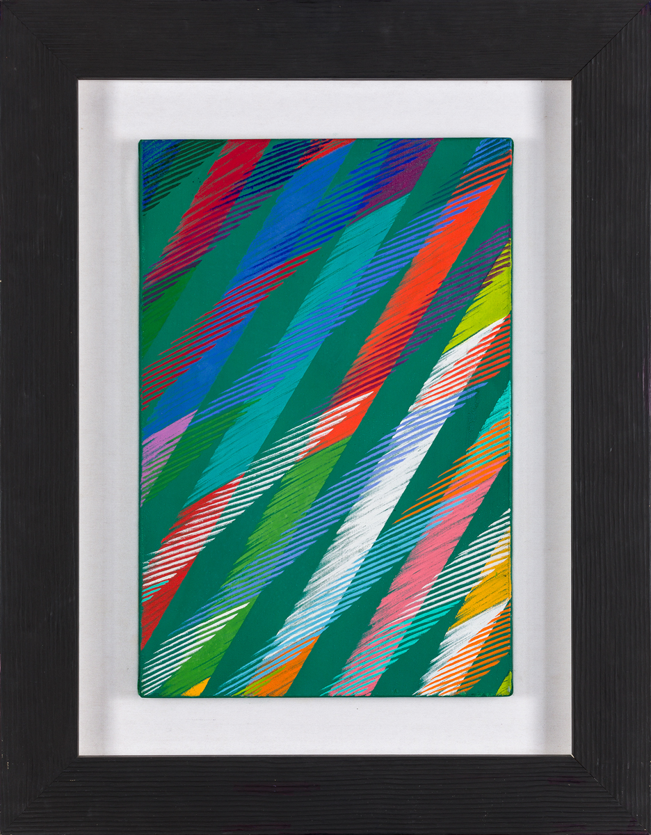 Timbro Piero Dorazio con numero di repertorio al retro sulla tela e sul telaio