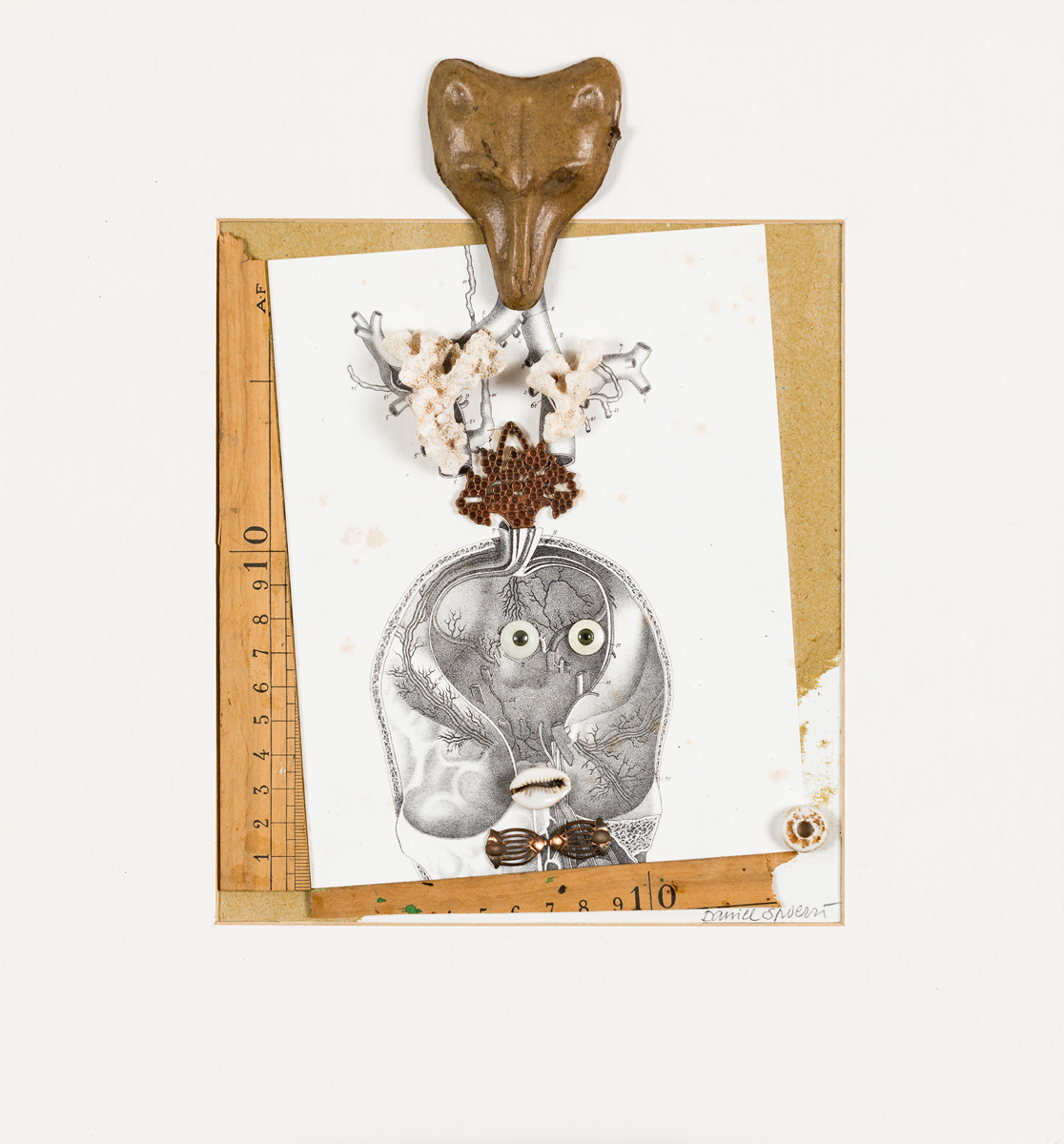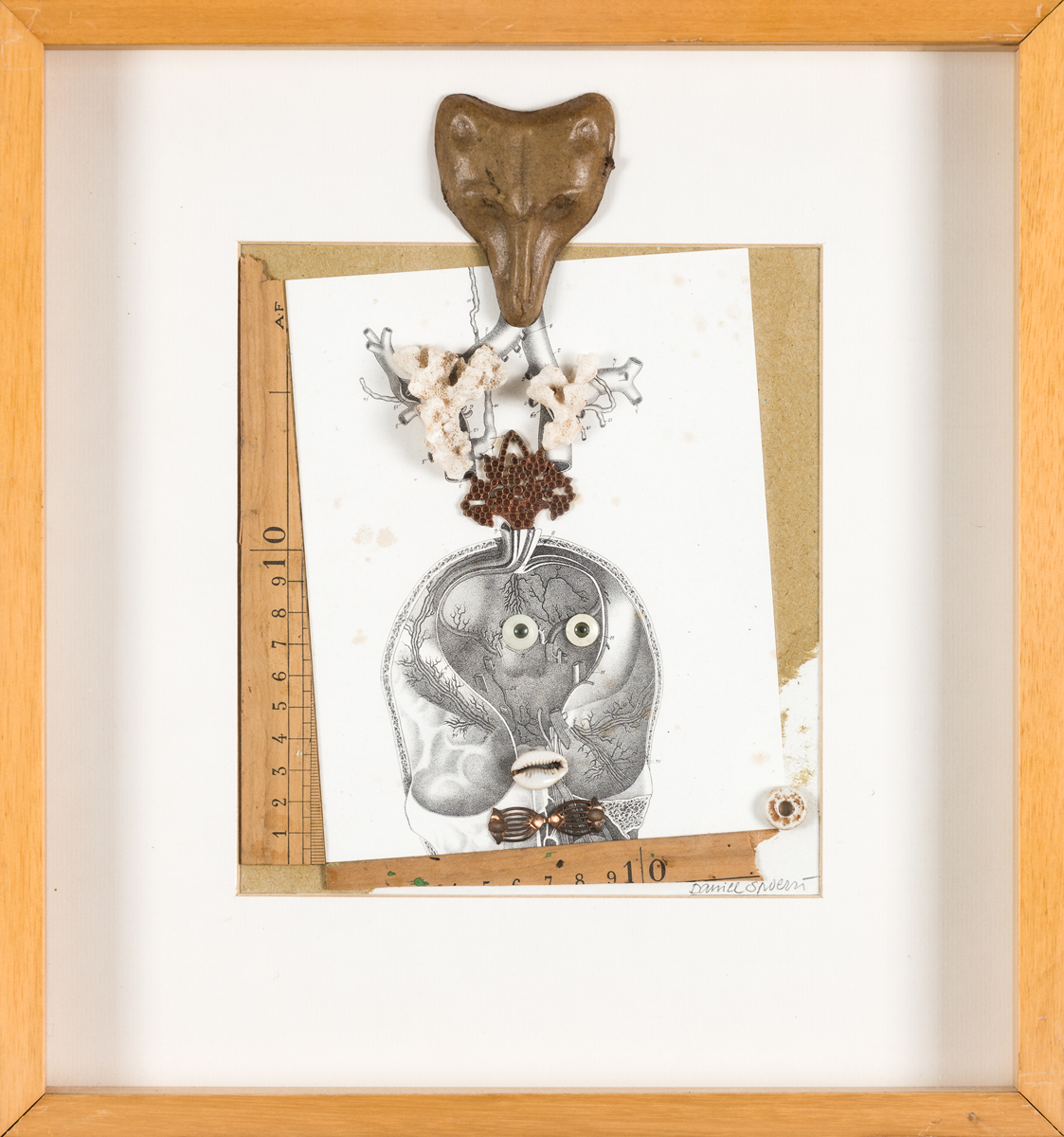 Assemblage di legno, carta, conghiglie, corallo e oggetti su cartone