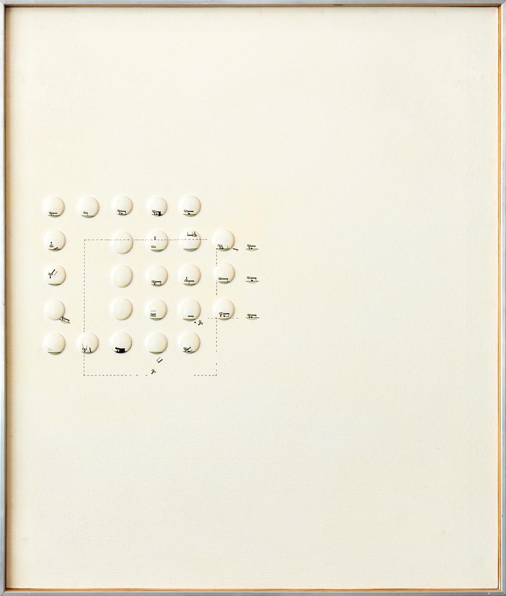 Firma, titolo, datazione (Maggio 1967), timbri ed etichetta dell'Artista al retro