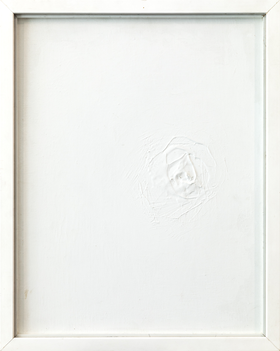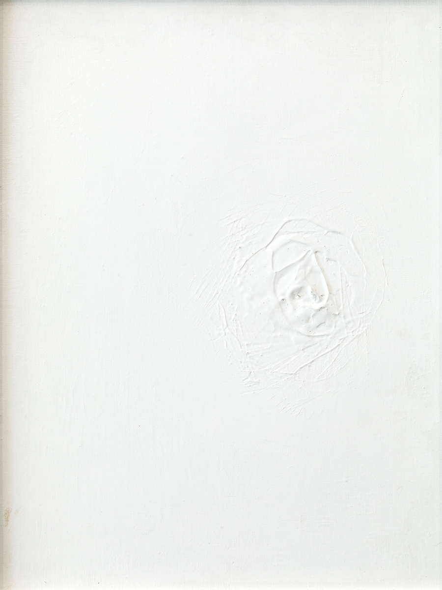 Liquitex, gesso, gel medium, titanium white su tela con spillo in acciaio
