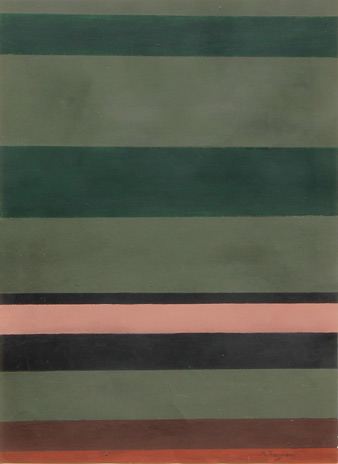 REGGIANI Mauro Nonantola 1897 - Milano 1980 Composizione, 1976 tempera su carta, cm. 37 x 27 Firma 'M. Reggiani' (in basso a destra) Etichetta della Galleria La Polena, Genova (al retro) Autentica dell'Archivio Mauro Reggiani, a cura della figlia Virgilia Reggiani, in data 22/09/1988 Bibliografia: L. Caramel 'Reggiani', Fabbri Editori, p. 154