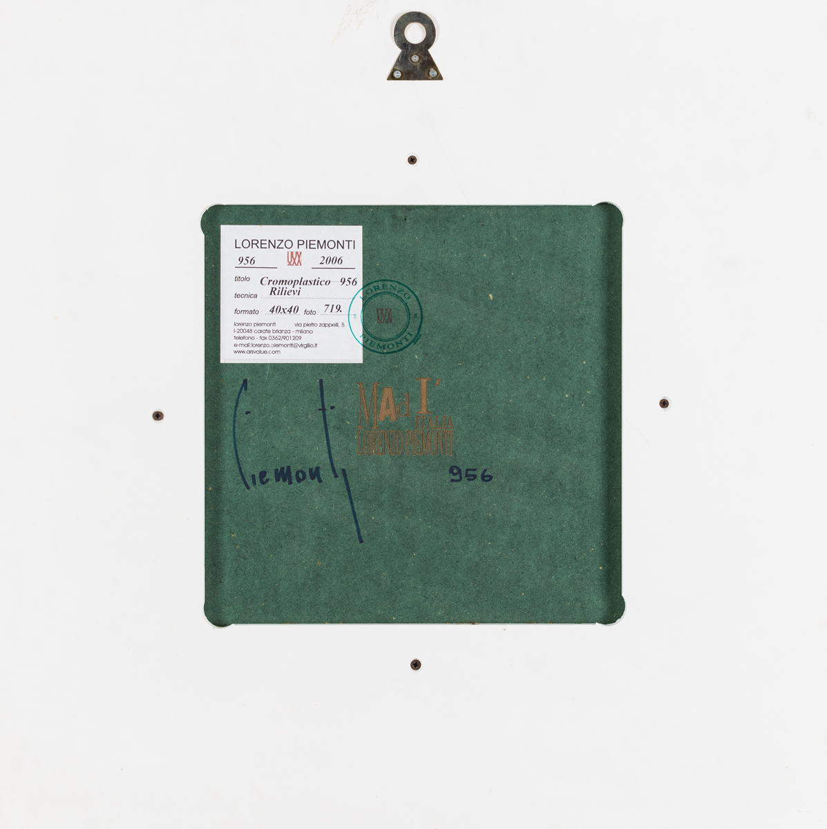 Etichetta e timbri dell'Artista al retro