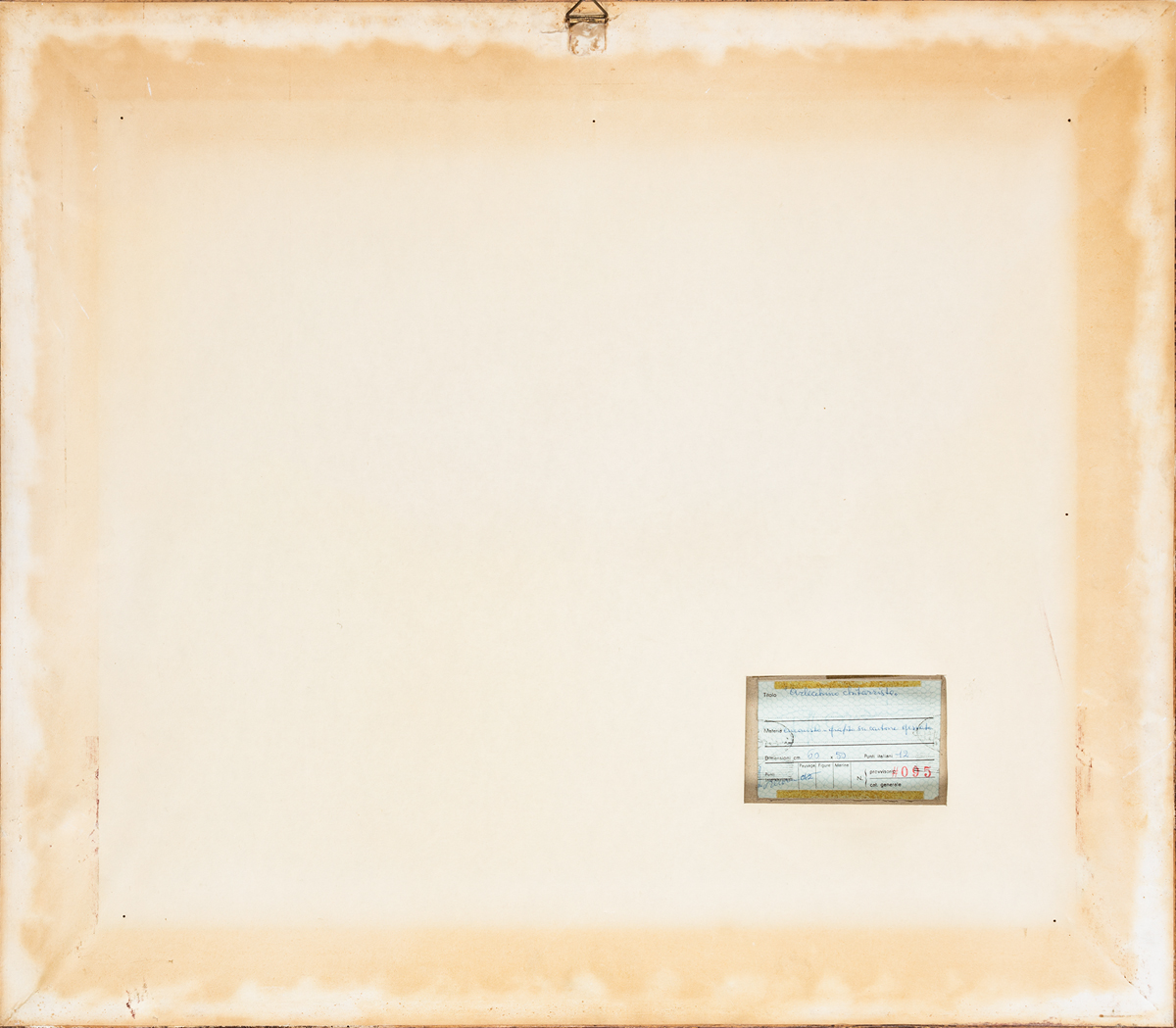 Etichetta e timbri dell'Artista con titolo, tecnica, misure e numero di repertorio al retro