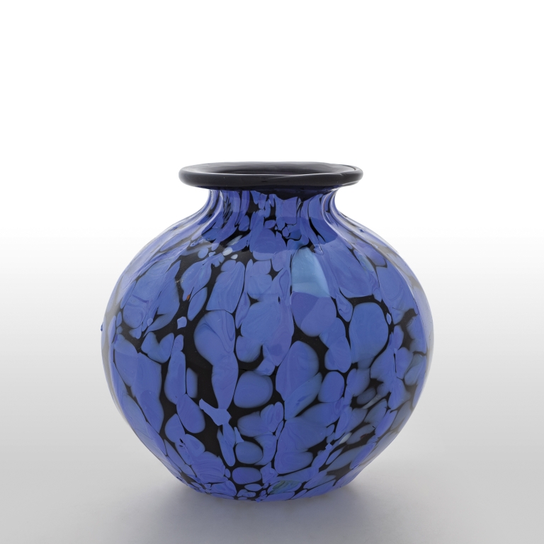 Un vaso in pasta vitrea nera e macchie azzurre anni '30.