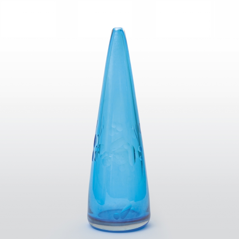 Un vaso inciso 'Milleocchi' in vetro trasparente azzurro con incisioni lenticolari 1954.