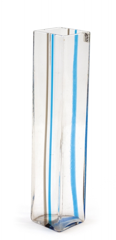 Un vaso in cristallo a sezione quadra con fasce di colore circa 1972.