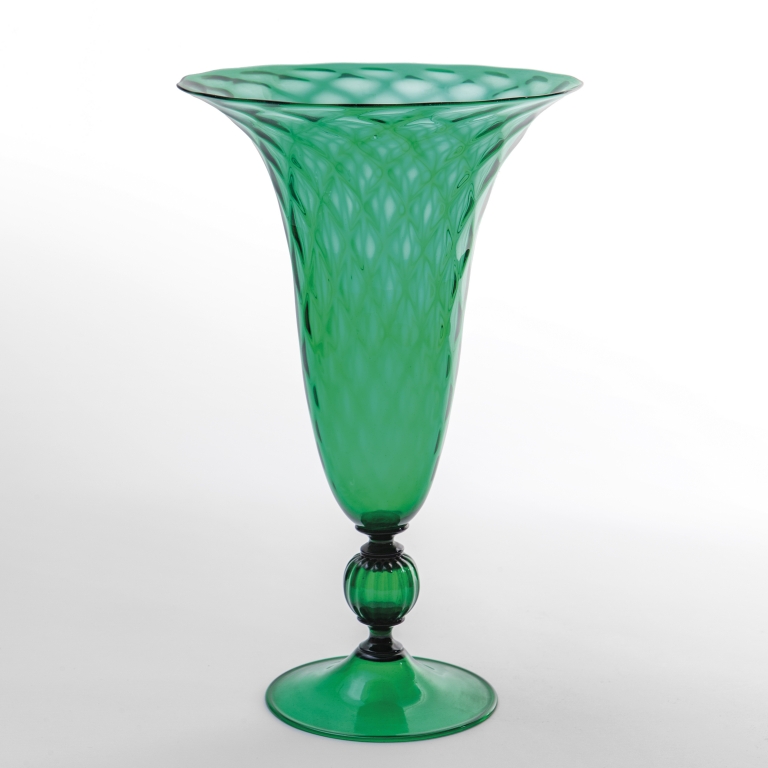 Un vaso in vetro verde lavorato a 'baloton' circa 1925.