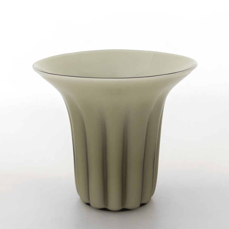 Un vaso della serie 'I Morandi' modello 0518 in vetro opalino grigio serie limitata 199 esemplari 1983.