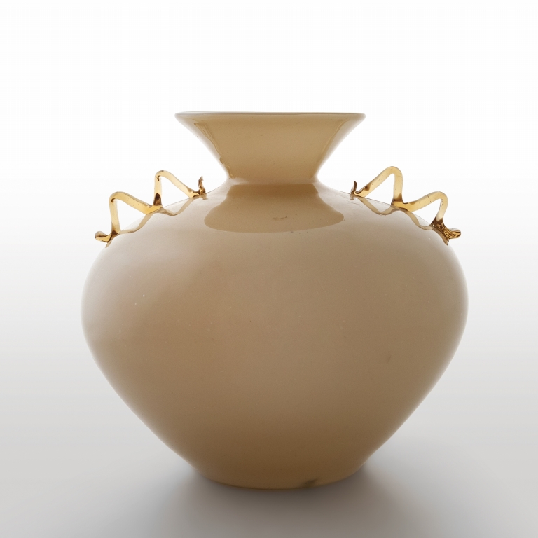 Un vaso in vetro incamiciato con fascette ondulate applicate anni '30.