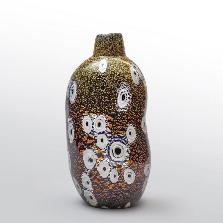 Un vaso 'Yokohama' vetro a murrine bianconere e reazioni policrome 1965 - 1968.