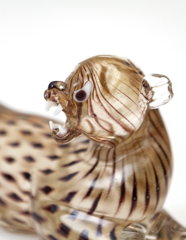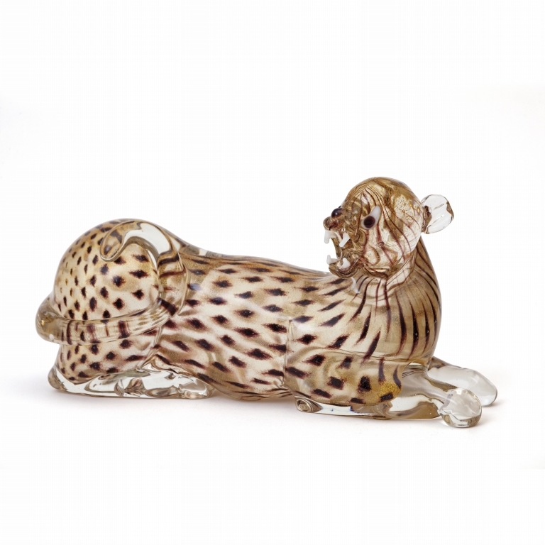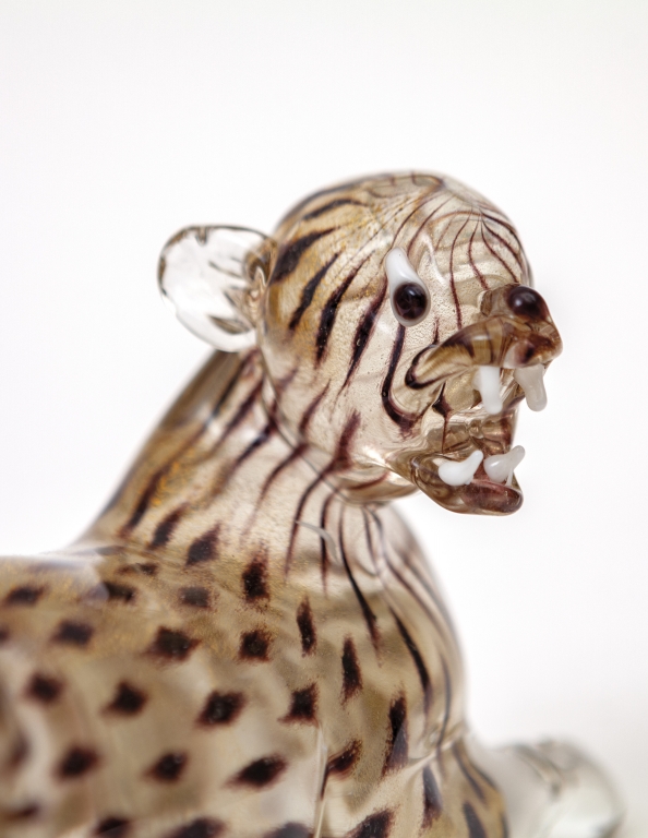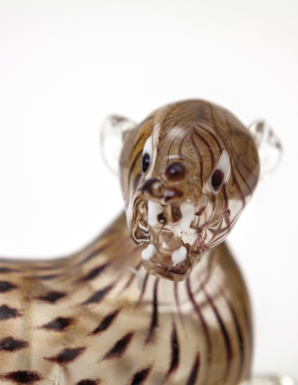 Figura di ghepardo in cristallo e foglia oro con macchie uniformi ametista 1955.