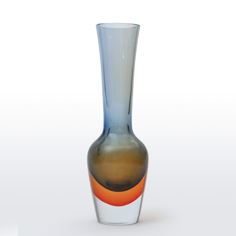 Un vaso in vetro sommerso rubino e fumè circa 1960.