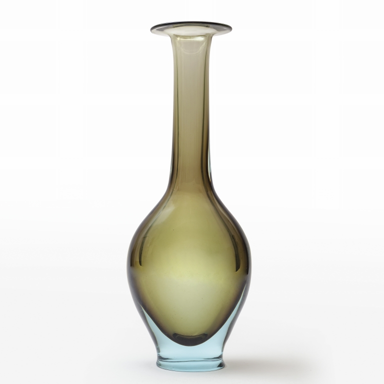 Un vaso in vetro sommerso azzurro e oliva circa 1965.