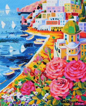 FACCINCANI Athos Peschiera del Garda (Vr) 1951 Tra luce e riflessi Positano, 2011 olio su tela, cm. 45 x 35 Firma 'Faccincani' (in basso a destra) Titolo, firma 'Tra luce e riflessi Positano, A. Faccincani' (al retro) Autentica dell'artista su fotografia