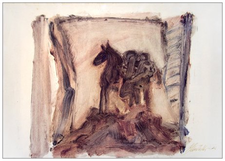 VINCENZO MUSCATELLO 1941 Senza titolo 1971 Pittura su carta 33,5 x 47. Firma e data in b. a d.; timbro a secco dell’autore in b. a s.