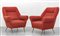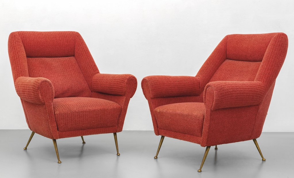 Strutture in legno gambe di ottone imbottiture rivestite in tessuto.