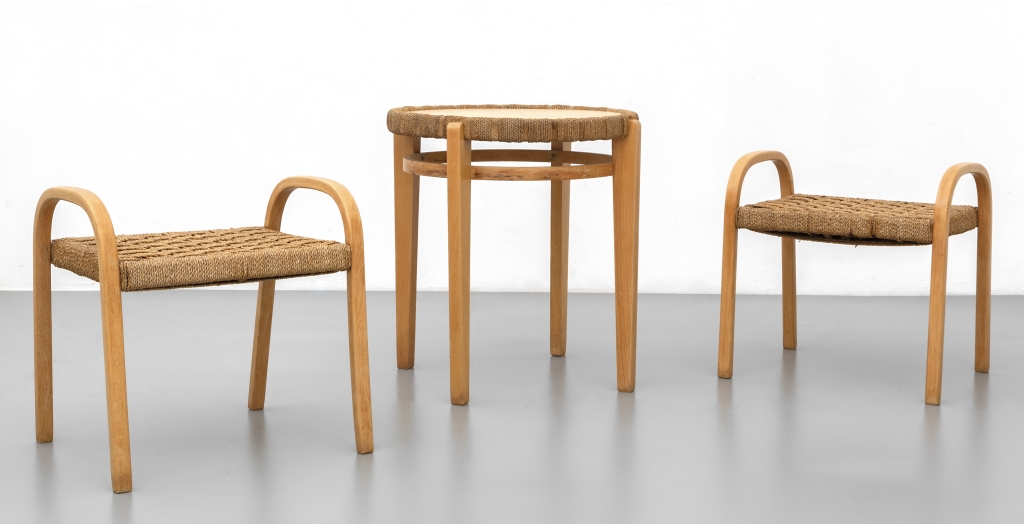 DUE SGABELLI e UN TAVOLINO anni '60.