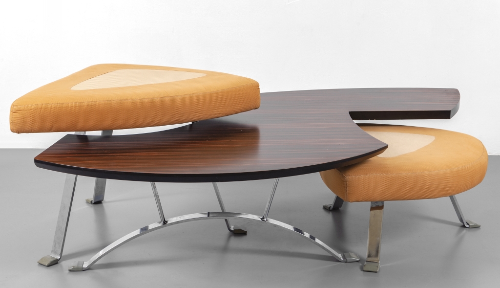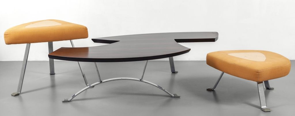Due sgabelli e un tavolino della serie 'I Loft' anni '70.