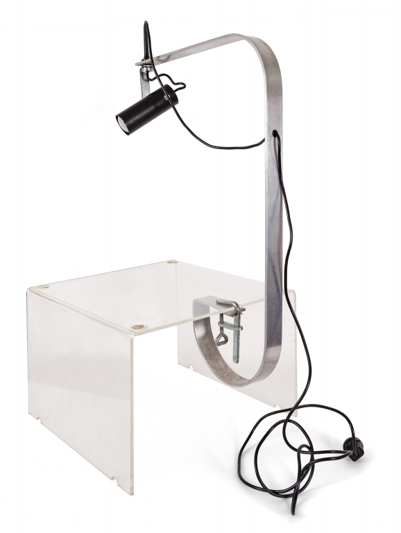 Una lampada da tavolo a morsetto 'Balestra' per FONTANA ARTE 1972.