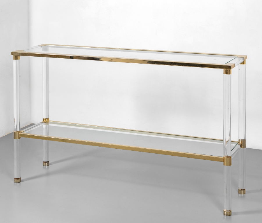 Acciaio ottonato plexiglass e cristallo.