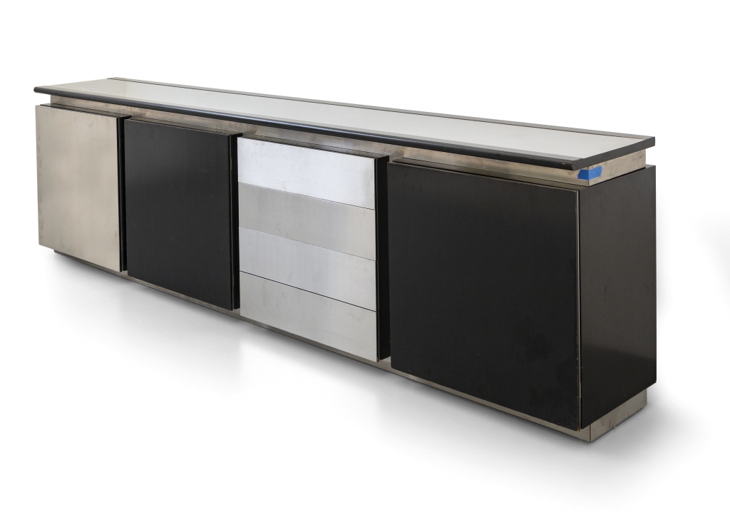 Una credenza 1971. Legno laccato acciaio inossidabile satinato.