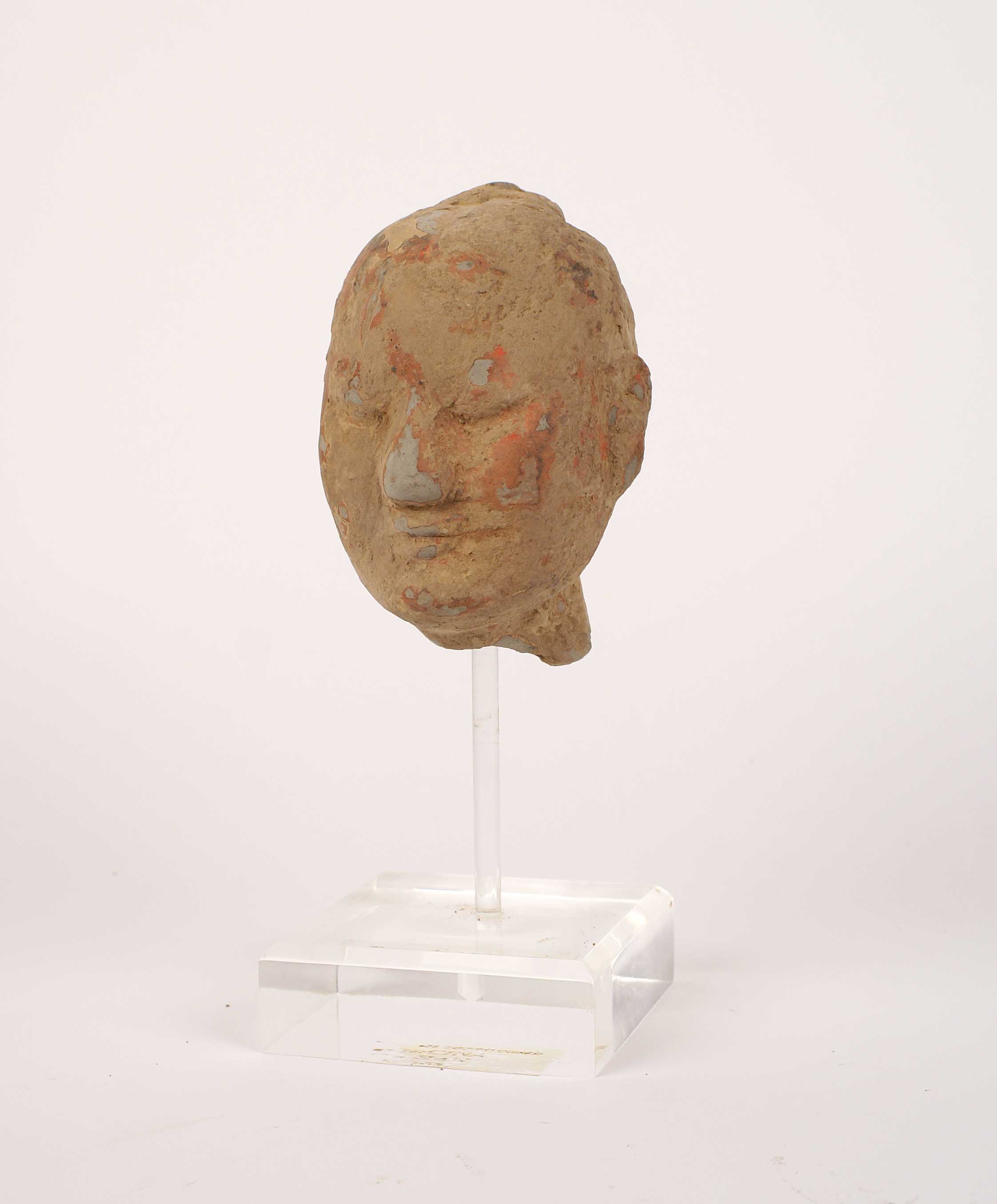Lot 105 | TESTA IN TERRACOTTA Cina epoca Han 25-265 d.C. Poggiante su base in...