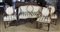 Salotto composto da 2 divani e 6 poltrone lastronate in legno di noce Luigi...
