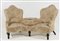Divano tete-a-tete in legno rivestito da stoffa floreale, al centro uno...
