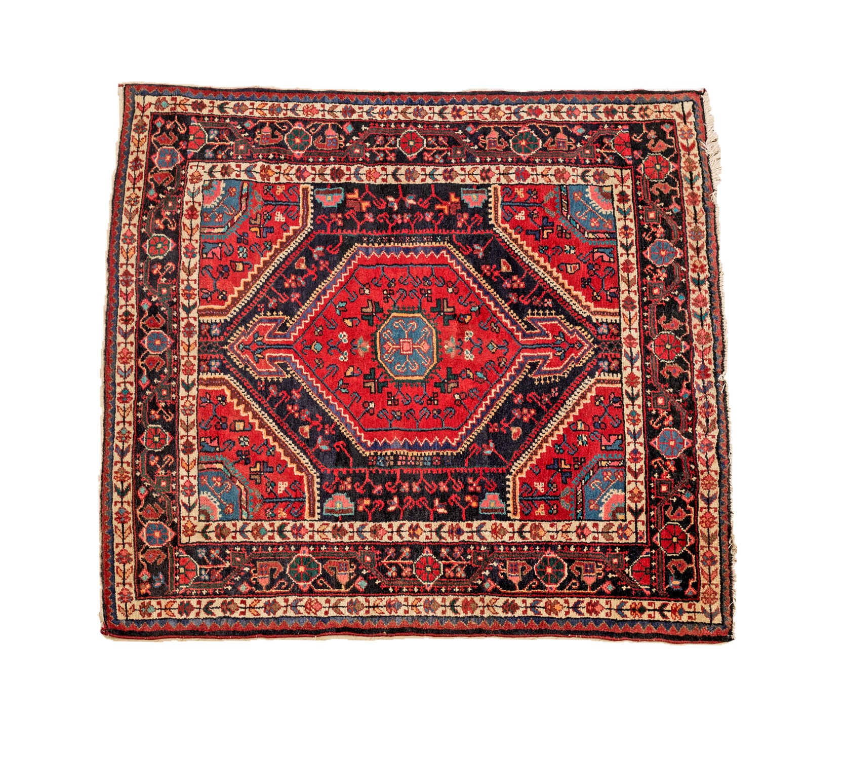 con losanga centrale a vertici cuspidati e cantonali rossi con piccolo nucleo azzurro.