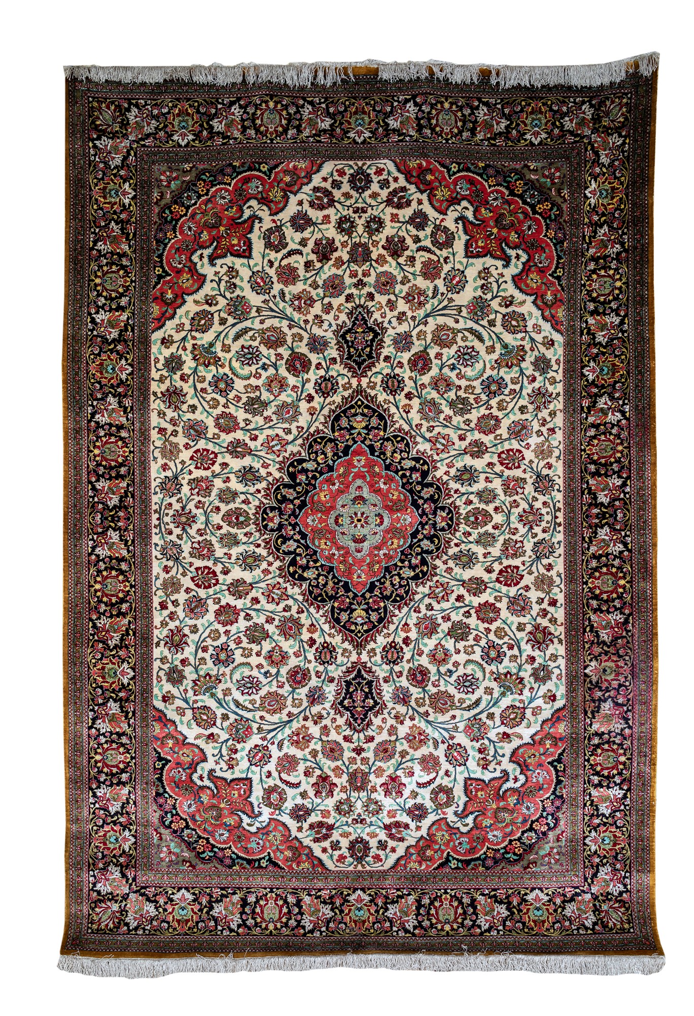 con fitto disegno floreale centrato da medaglione rosso e nero. cm 312x200