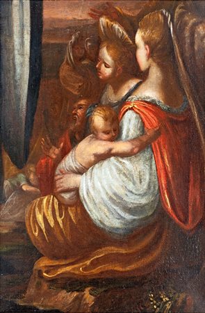 Pittore del XVII secolo Holy family with St. Anna and St. John