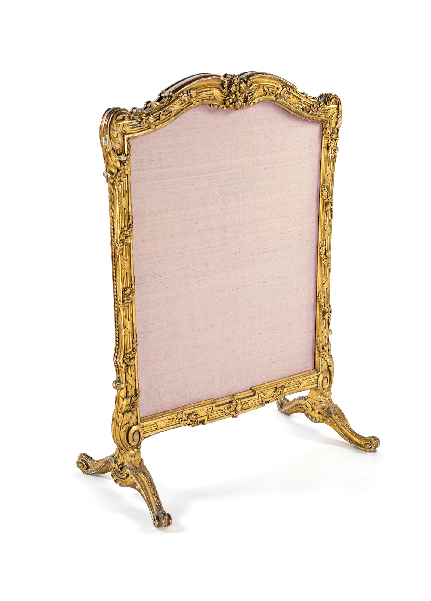 con pannello in tessuto e cornice sagomata intagliata in forma di verghe legate da nastri incrociati arricchita da rilievi vegetali e fiori sparsi. XIX secolo. cm 105x72x44