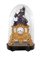 caratterizzato da figura scultorea di guerriero con vessillo crociato in metallo brunito; quadrante circolare in smalto bianco a due fori di carica e fascia oraria a numeri romani, incorniciato da una maschera in bronzo dorato con due finestre rettangolari ad includere placchette in marmo bianco. Protetto da una campana di vetro. XIX secolo. cm 48x30x14