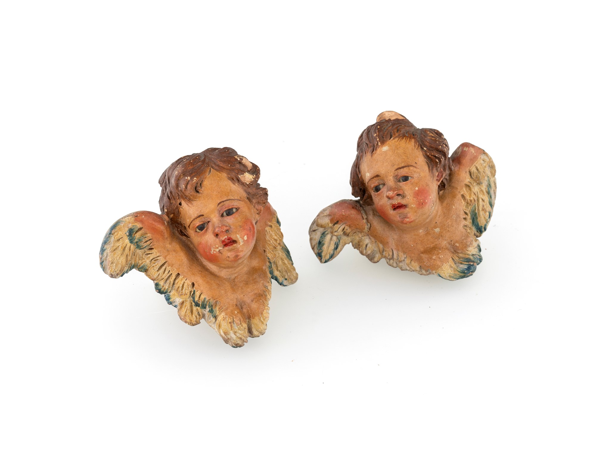 In terracotta policroma, occhi di vetro. Difetti al volto. cm 8x9