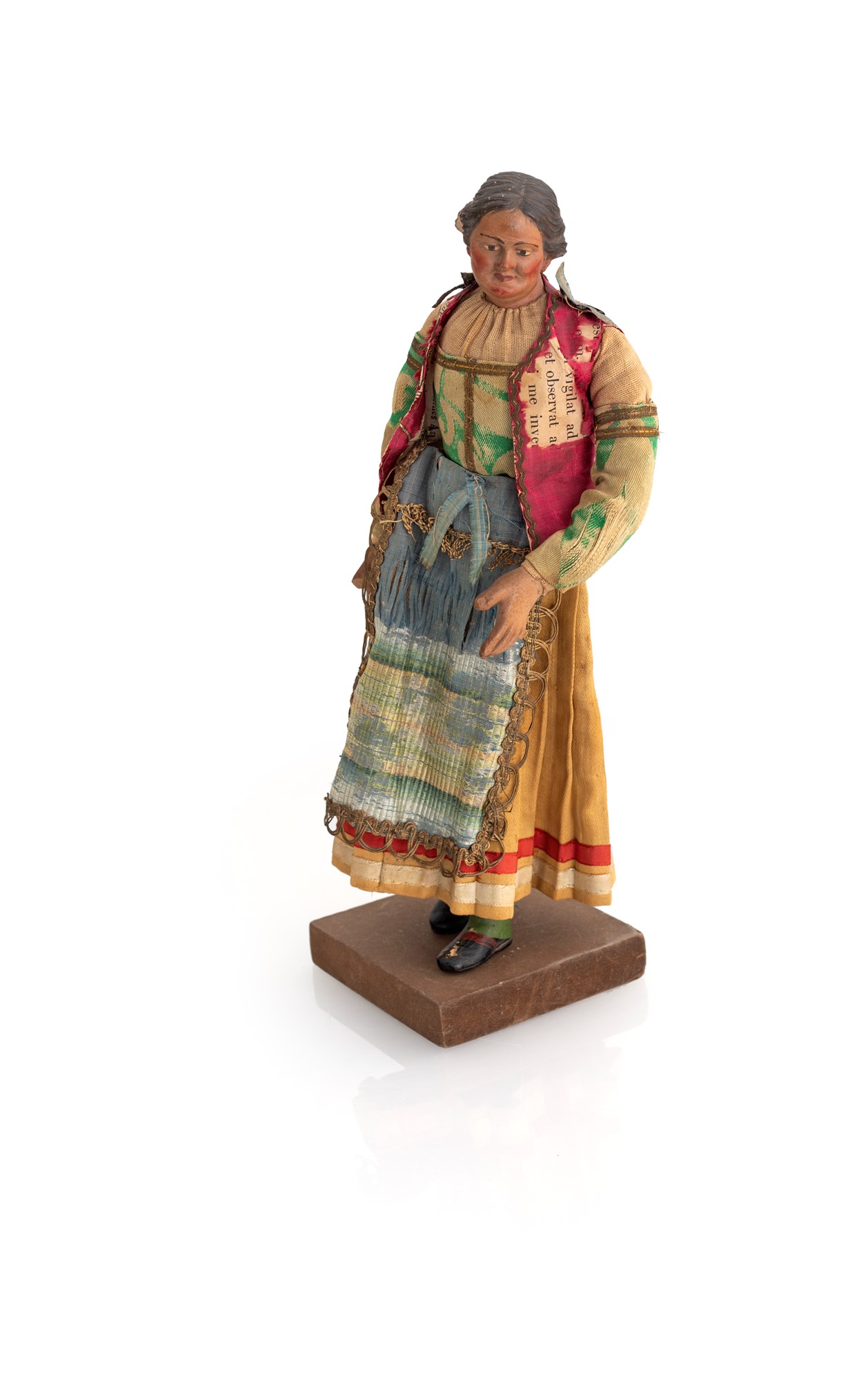 camicia plissettata, ampia gonna beige, ampio grembiule, difetti altezza cm 30