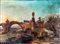 Pittore degli inizi del XIX secolo River landscape with bridge and animals