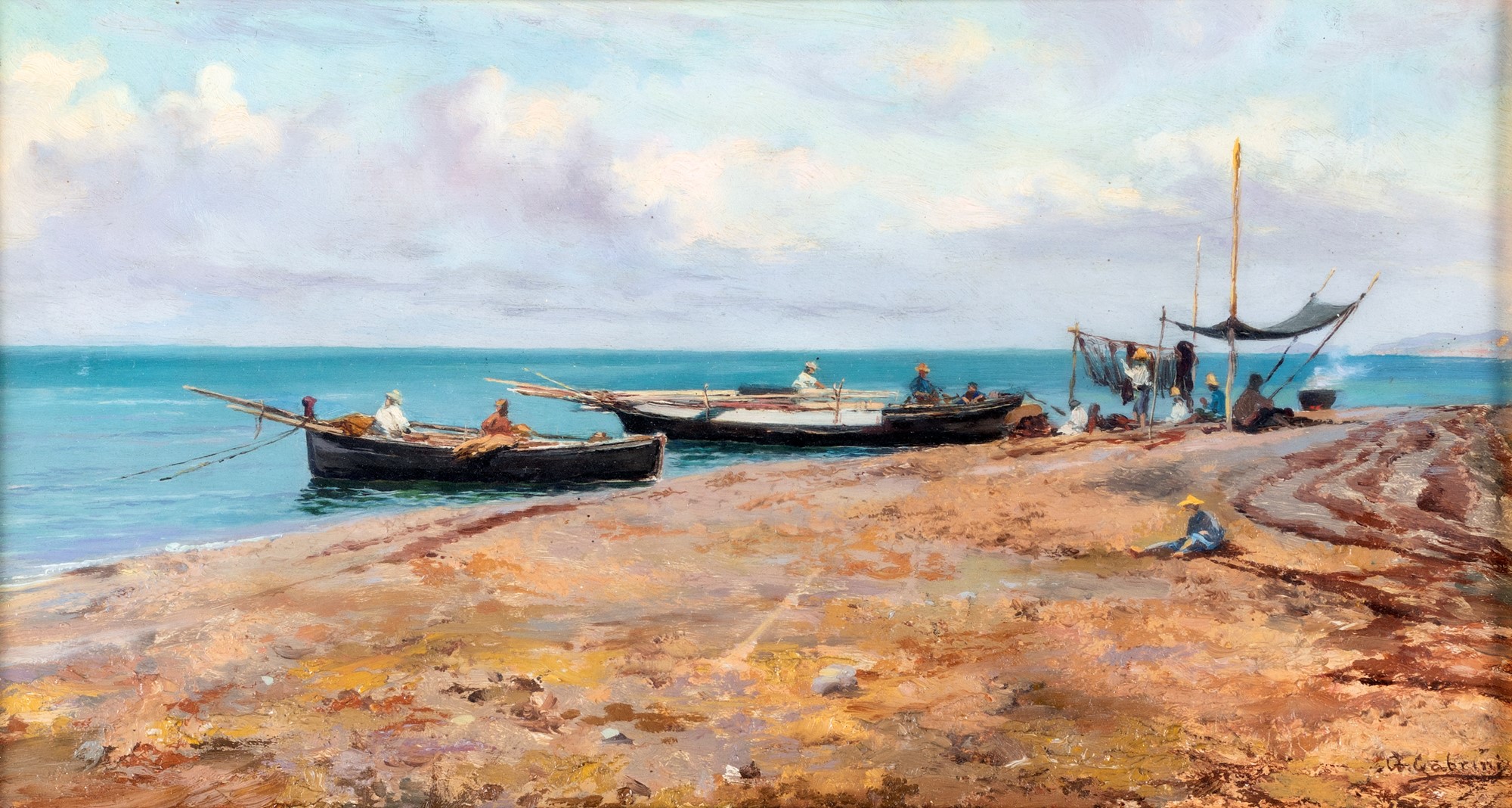 Alfonso Gabrini (attivo nel XX secolo) Boats with fishermen