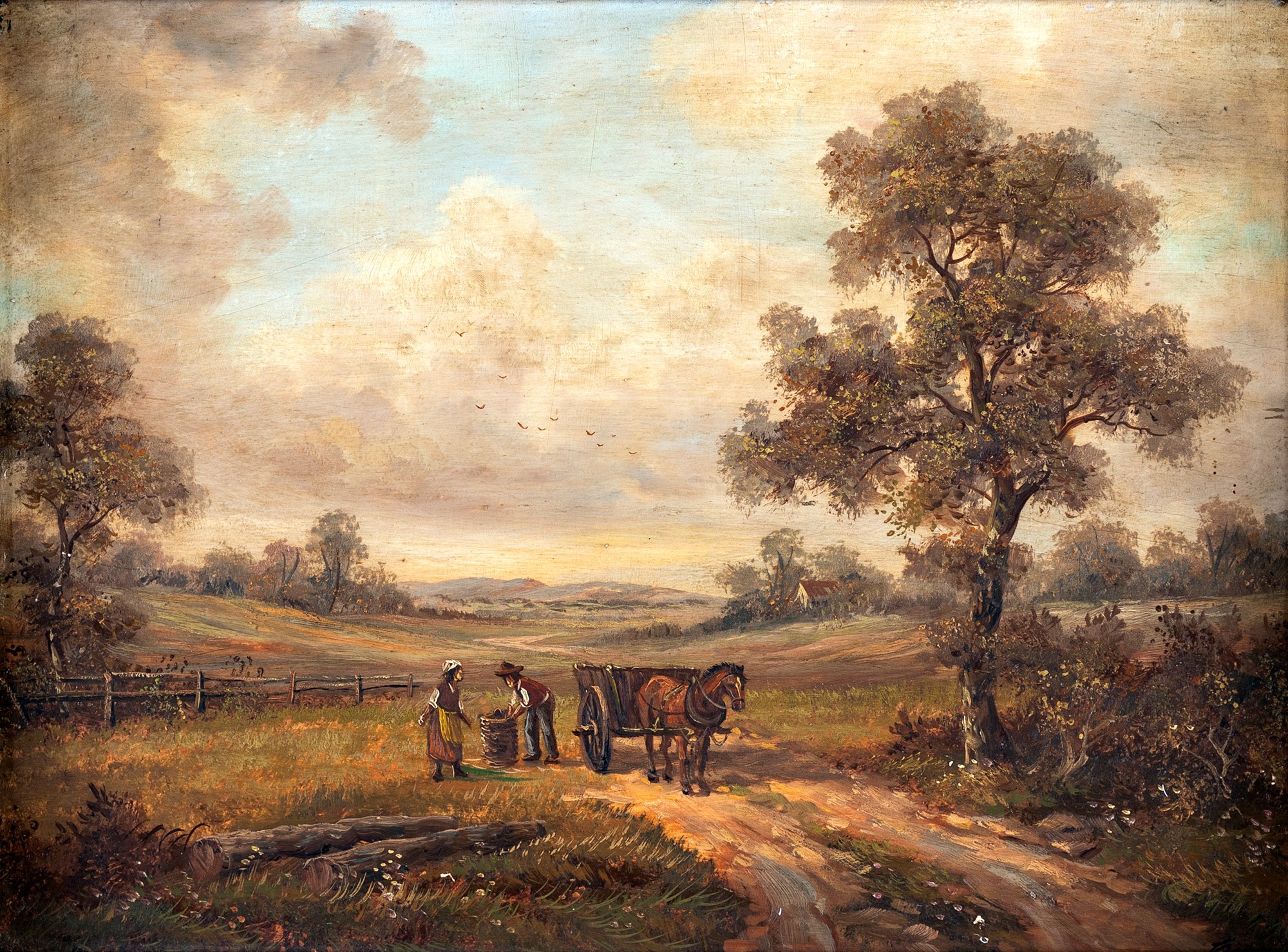 Pittore del XIX secolo Landscape with figures and horse